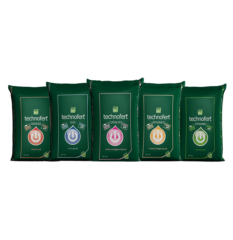 • Technofert, yetiştiriciliğin zor olduğu soğuk, ıslak, alkali şartlarda bitkilerin ek besin ihtiyaçlarını, geliştirilmiş formulasyonları ile karşılamaya yardımcı olur. İyi bir başlangıç, iyi bir gelişim, erken ve kaliteli ürün elde etmek için tasarlanan bir gübredir. Verim ve kaliteyi pozitif yönde teşvik eder. Kolay kullanımı ile zaman kazandırır, maliyeti düşürmeye yardımcı olur. Farklı 5 formulasyonu ile bitkilerin farklı dönemlerinde ihtiyacı olan bitki besin maddelerini, dengeli bir şekilde kullanıma sunar. Toprakta bulunan demir, mangan, bakır ve çinko gibi metaller çoğunlukla suda zor çözünür bileşikler halindedir. Ayarlanmış pH’ı sayesinde bu minerallerin bitkiler tarafından alımını kolaylaştırır. Technofert kristal yapıdadır ve aynı zamanda kuvvetli asidik özelliklere sahiptir. Technofert kullanılan programlarda ek asit kullanılmasına ve taban gübresi kullanılmasına gerek yoktur. Kristal yapıda ve akışkan olması nedeniyle sıvı asitlerle karşılaştırıldığında taşıması ve kullanılması kolaydır. Anti-clogging özellikleri sayesinde sulama sistemlerini temiz tutar, tıkanmayı önler, su ve gübrenin eşit dağılmasını sağlar.